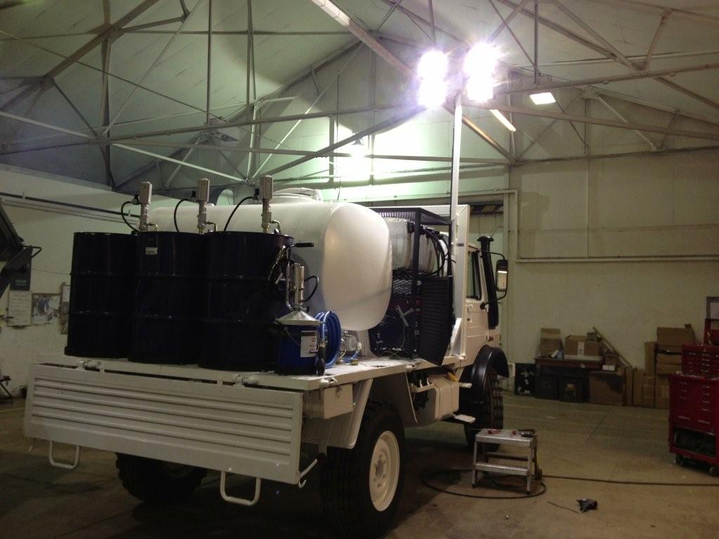 Mercedes unimog 4x4 service truck fitted with the following equipment;