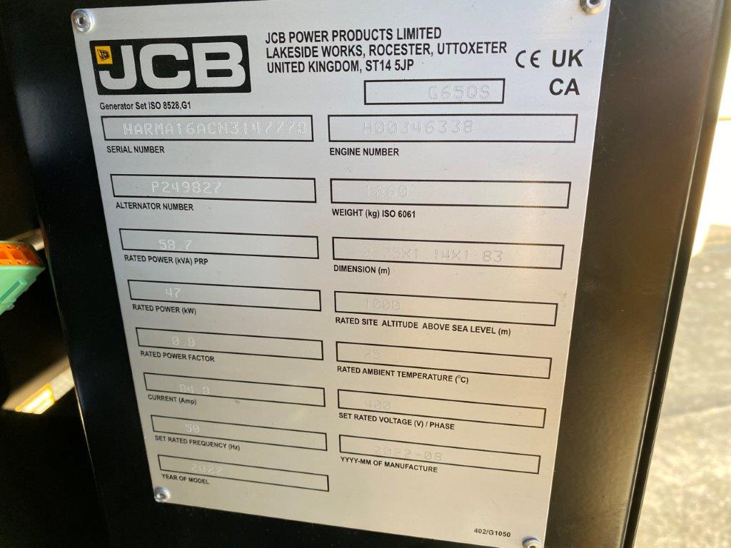 New Unused JCB G65QS Generator - MoD Ref: 50468