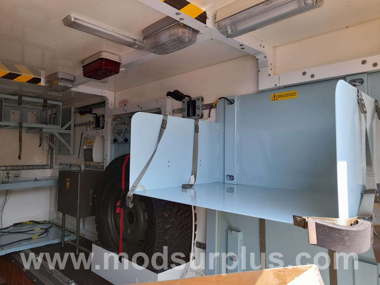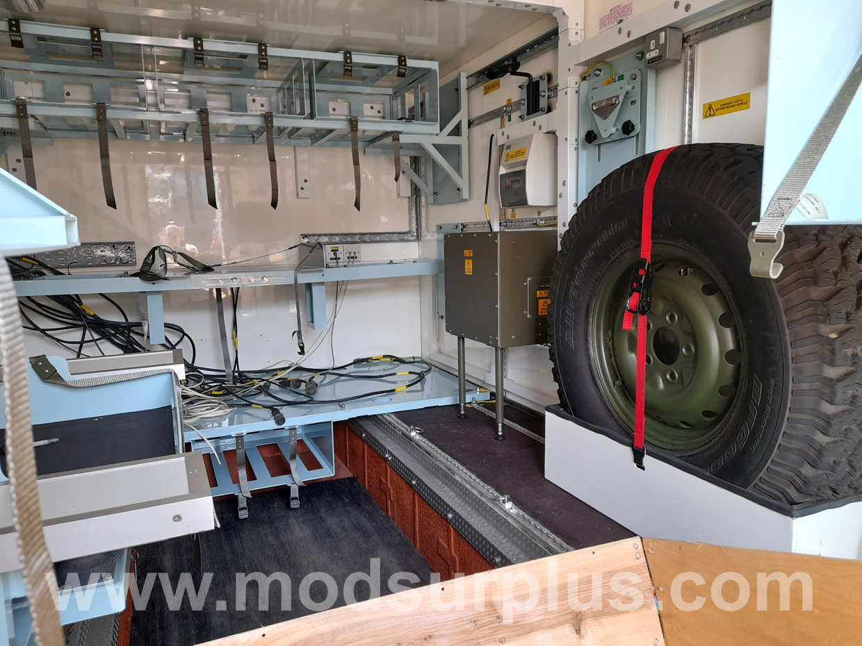 The comms body compartment is at the rear and is set out for two or more operators with racking for radio equipment (removed by the MOD)